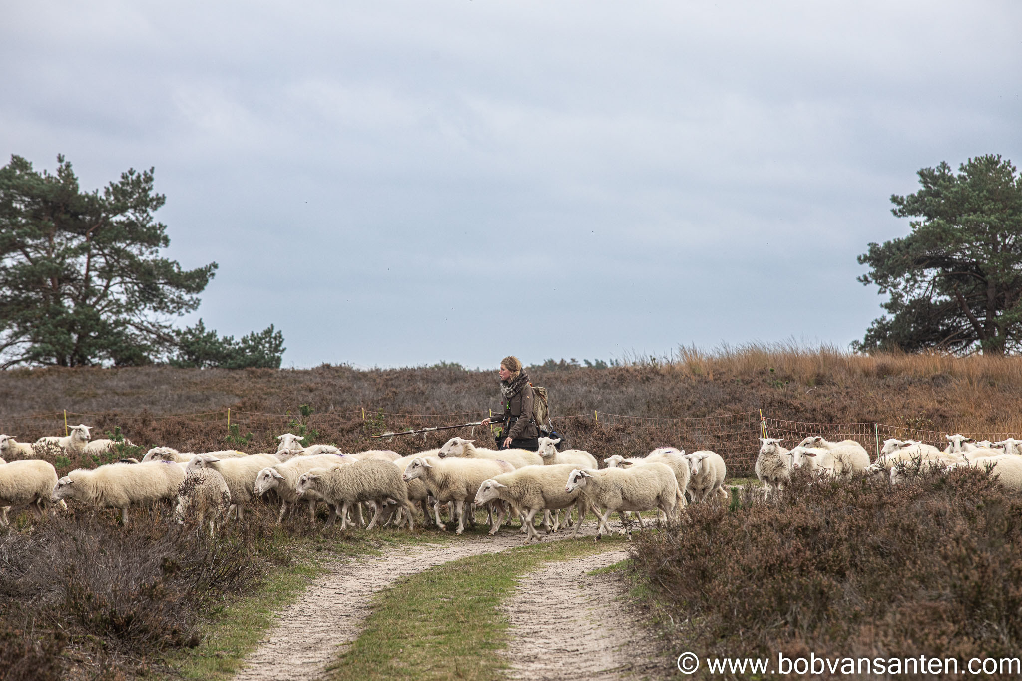 [2019] Sheep shepherdess Daphne is guiding her herd at the heaths of Elspeet, the Netherlands.